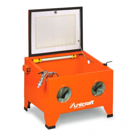 Samostatně stojící box pro pískování menších a středně velkých předmětů.