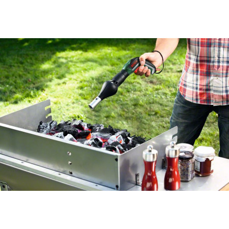 Rozdmýchává dřevěné uhlí pro dosažení dokonalých podmínek ke grilování