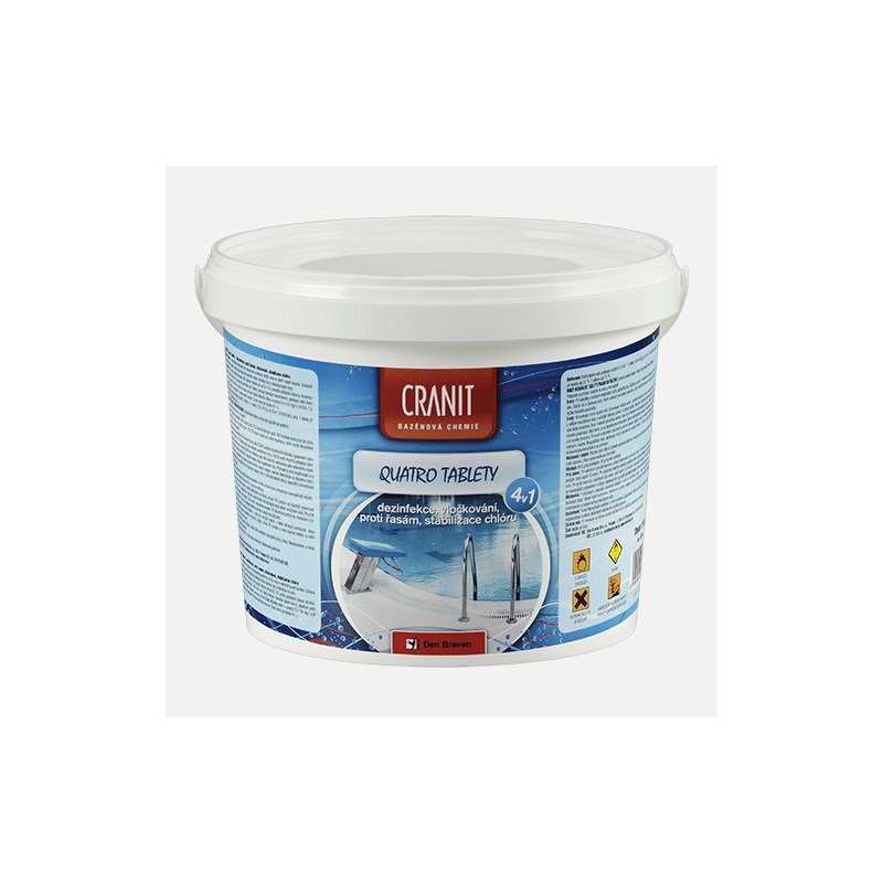 Den Braven - Cranit Quatro tablety - dezinfekce, proti řasám, vločkování, stabilizace, kbelík, 2,4 kg