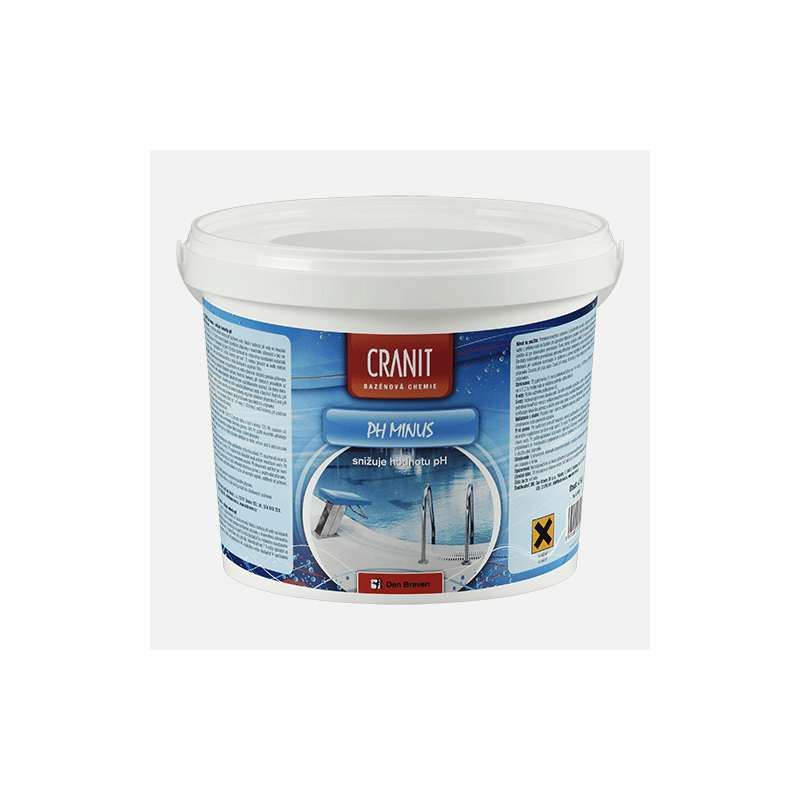 Návod k použití: Potřebné množství přípravku (rozpuštěného ve vodě v plastové nádobě) pomalu přilévejte u přítoku vody do bazénu při zapnutém filtračním zařízení. Kontrolu hodnoty pH (testery) provádějte až po dokonalém promíchání. Tento postup opakujte, dokud pH není v požadovaném rozmezí. Do doby dokonalého promíchání přípravku filtračním zařízením je nutno vyloučit přítomnost osob v bazénu! Hodnotu pH následně kontrolujte 1x týdně a zjištěné odchylky od ideální hodnoty regulujte přidáním přípravku Cranit pH plus nebo Cranit pH minus. Kontrola je nutná především před přidáváním dezinfekčních přípravků.