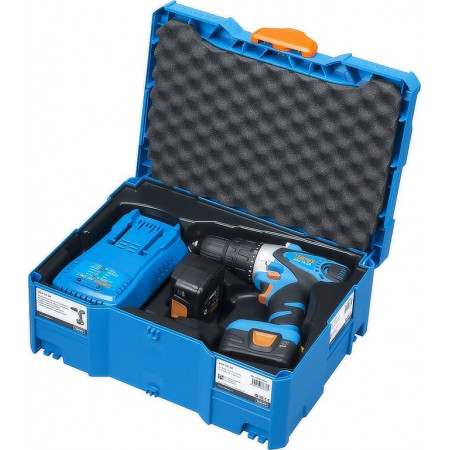 rychlovýměnné sklíčidlo, Rychlovýměnný úhlový adaptér, Spona na opasek a zásobník bitů, 2 akumulátorové články LiHD (12 V/4,0 Ah), Nabíječka ASC 55 "AIR COOLED", metaBOX 118