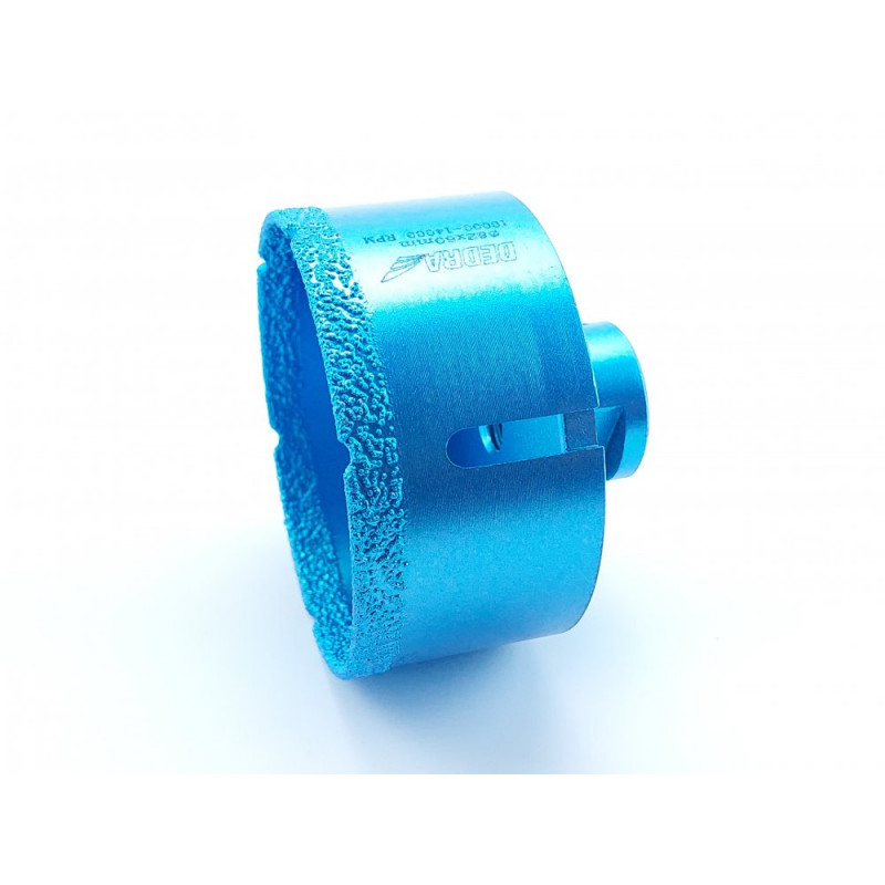 Diamantová vrtací korunka do úhlové brusky pro suché vrtání je určena k vykroužení otvorů do keramických obkladů, betonu, cihel, skla, asfaltu, oceli, laminátu, dřeva, glazurované keramiky, barevných kovů a plastů.
