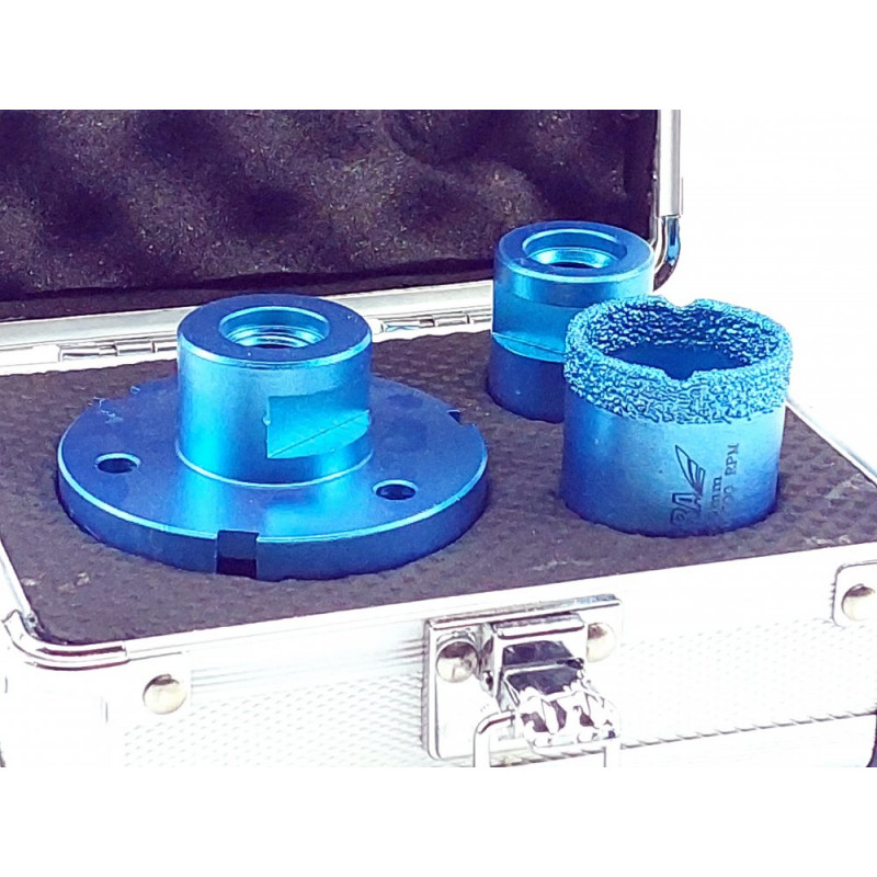 Diamantová vrtací korunka do úhlové brusky pro suché vrtání je určena k vykroužení otvorů do keramických obkladů, betonu, cihel, skla, asfaltu, oceli, laminátu, dřeva, glazurované keramiky, barevných kovů a plastů.
