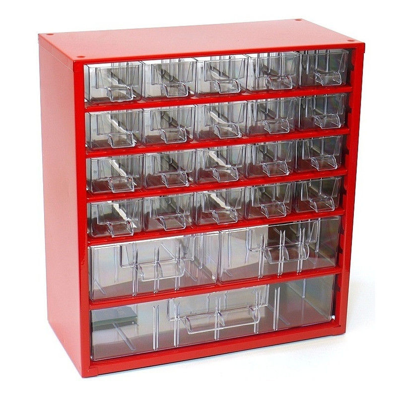 Kvalitní a odolné skříňky Mars, které nesmí chybět ani ve Vaší dílně, jsou vyrobeny z ocelového plechu a opatřeny odolným práškovým lakem. Čiré zásuvky a přepážky jsou vyrobené z trvanlivého materiálu PS(polystyrol).