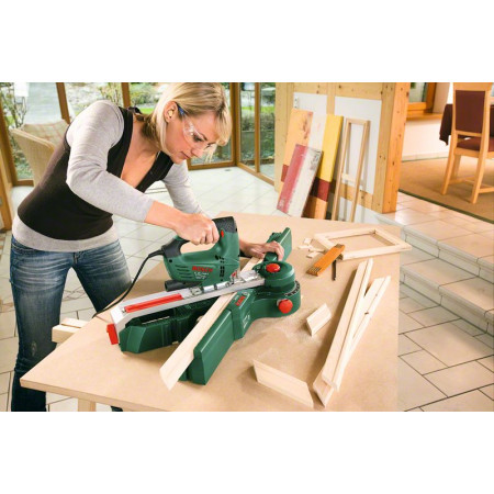 Obsahuje vodítka pro delší obrobky a integrované podpěry pro širší obrobky