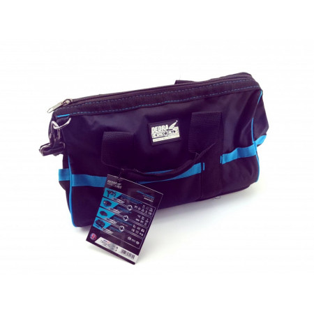 24L DED7001 taška na nářadí. Taška je vyrobena z odolného 600D vodotěsného dvouvrstvého polyesteru, který zajišťuje odolnost výrobku před mechanickým poškozením, ale také chrání nástroje během přepravy. Taška je uzavřena na zip a je vybavena nastavitelným ramenním popruhem.