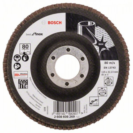 Lamelový brusný kotouč... Lamelový brusný kotouč X581, Best for Inox 115 mm, 22,23 mm, 80 145,20 Kč Přidat do košíku search
