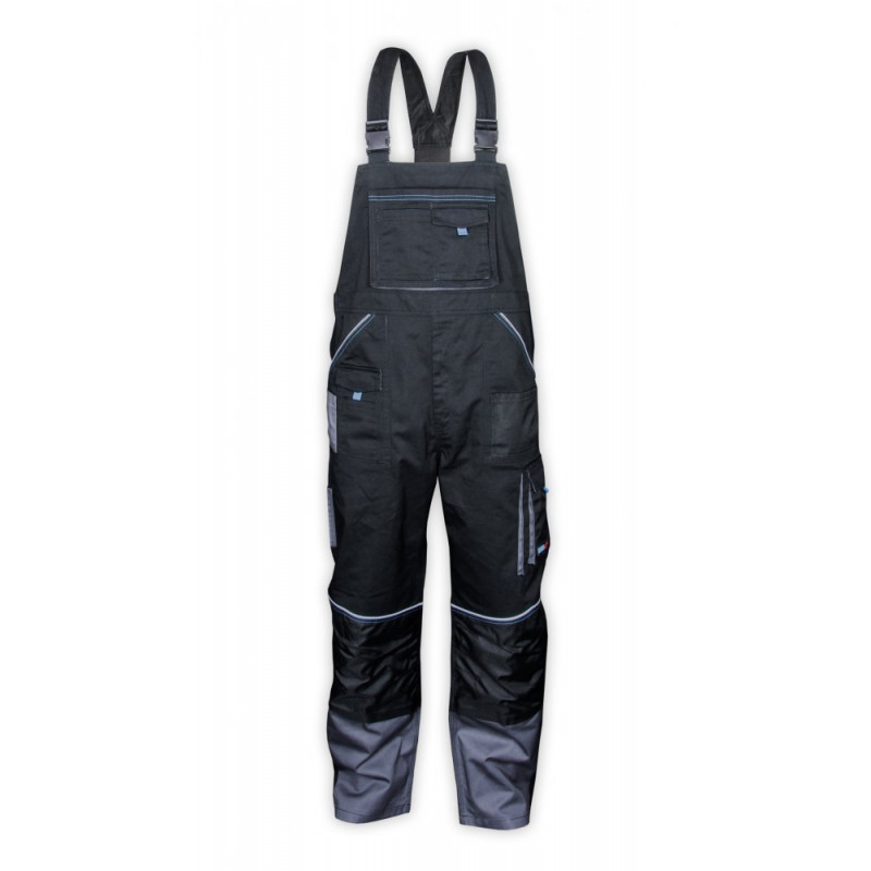 Ochranné montérky PREMIUM LINE jsou vyrobeny ze směsi polyesteru a bavlny. Takový materiál o hmotnosti 240 g/m² poskytuje vysokou odolnost proti oděru a mechanickému poškození. Další výztuhy na kolenou z materiálu Oxford. Mají funkční kapsy, včetně kapsy na smartphone. Trojité švy se používají ke zvýšení pevnosti kalhot. Díky nastavitelným ramenním popruhům a v nich všité gumě se kalhoty snadno nosí a během používání jsou pohodlné. Všité reflexní prvky pro zvýšení bezpečnosti. Ideální pro těžké stavební a rekonstrukční práce.