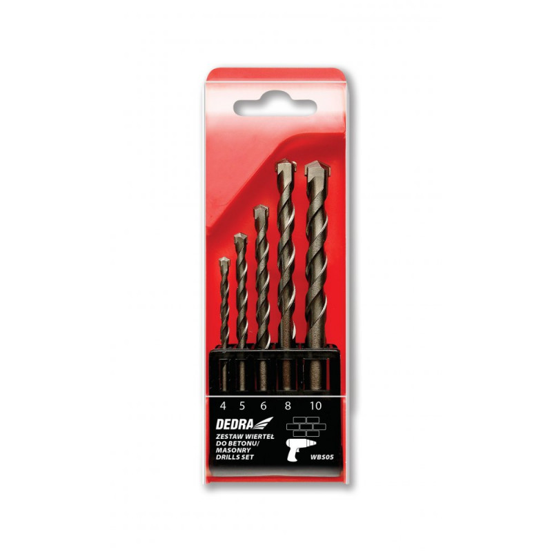 Sada vrtáků do betonu s válcovou rukojetí. Vrták s válcovou rukojetí. Vrtáky jsou určeny k vrtání do materiálů, jako jsou: beton, cihly, kámen, pórobeton. Vrtáky z vysoce kvalitní uhlíkové oceli. Deska z karbidu wolframu, hluboko zapuštěná a připájená do těla vrtáku, zajišťuje účinnost a přesnost během vrtání. Sada obsahuje 5 kusů vrtáků o průměru 4,5, 6, 8, 10 mm.