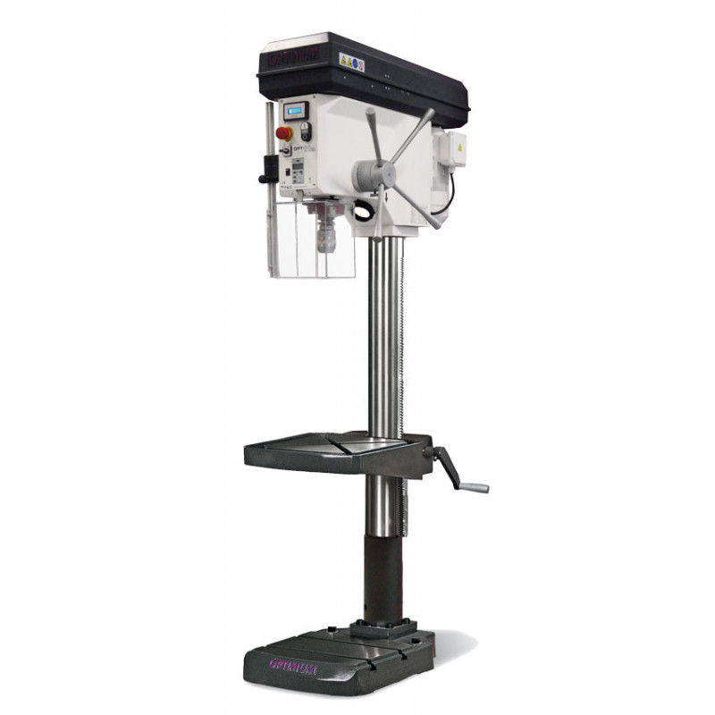 Přesně obrobený pracovní stůl s T-drážkami. Možnost jeho otočení o 360° okolo sloupu umožňuje použít základnu stroje jako pracovní plochu pro vysoké obrobky