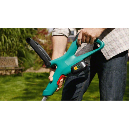 Flexibilní použití: zaklapávací otočná hlava pro sečení, začišťování okrajů a závěrečné úpravy trávníků. Jednotlačítkové nastavení výšky zajišťuje změnu výšky bez námahy