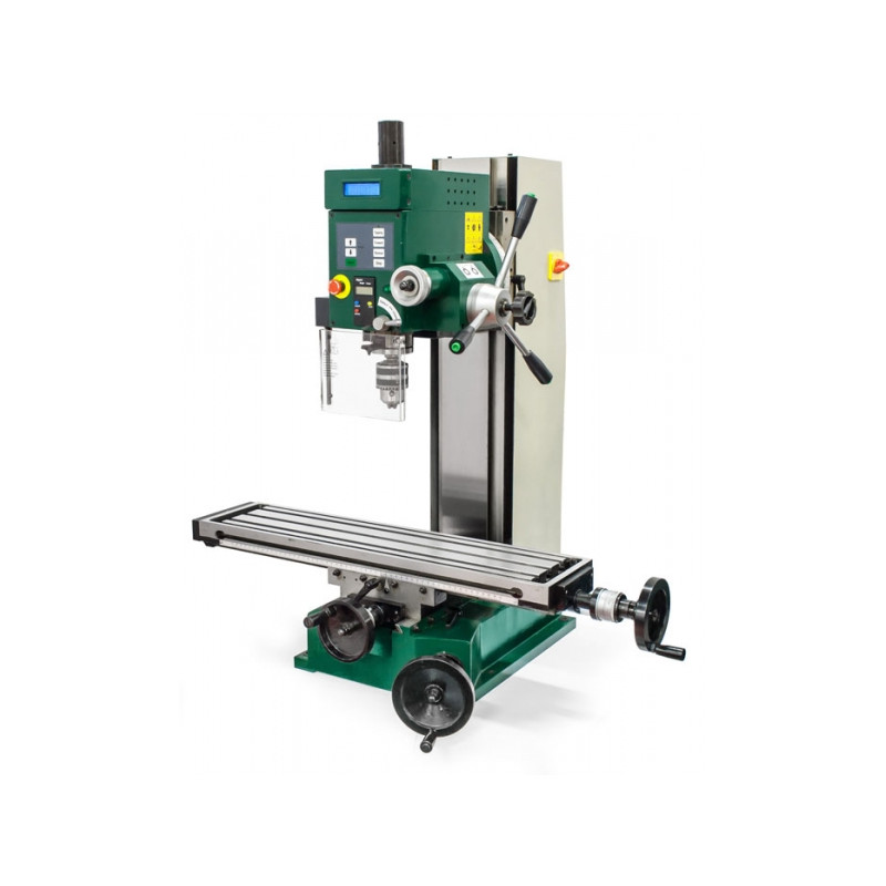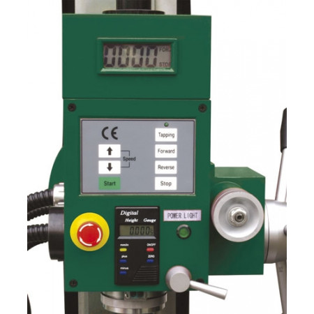 Velice dobře vybavená vrtačko-frézka, v základním provedení je osazena digitálním snímáním otáček, digitálním měřením vrtané hloubky a elektronicky řízenou funkcí závitování, která je v této kategorii poměrně ojedinělá